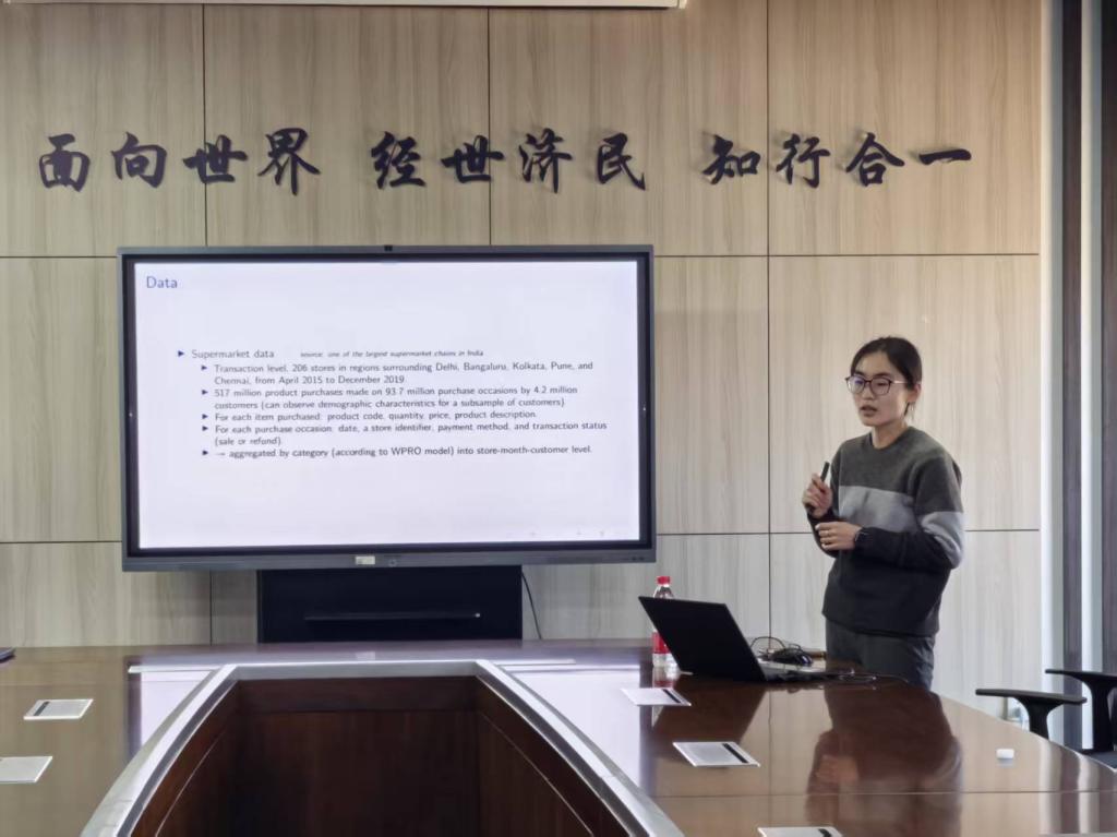 2025年12月17日,中央财经大学经济学院“中青年学者讲座”在学院楼11号楼317教室成功举行。本次论坛特邀复旦大学管理学院助理教授韩亚婕担任主讲嘉宾,带来题为“Eating Smart: Reducing Unhealthy Food during High Pollution”的学术讲座。讲座由中央财经大学经济学院副教授戴若尘老师主持。经济学院多位老师及相关领域研究生参与了本次讲座。