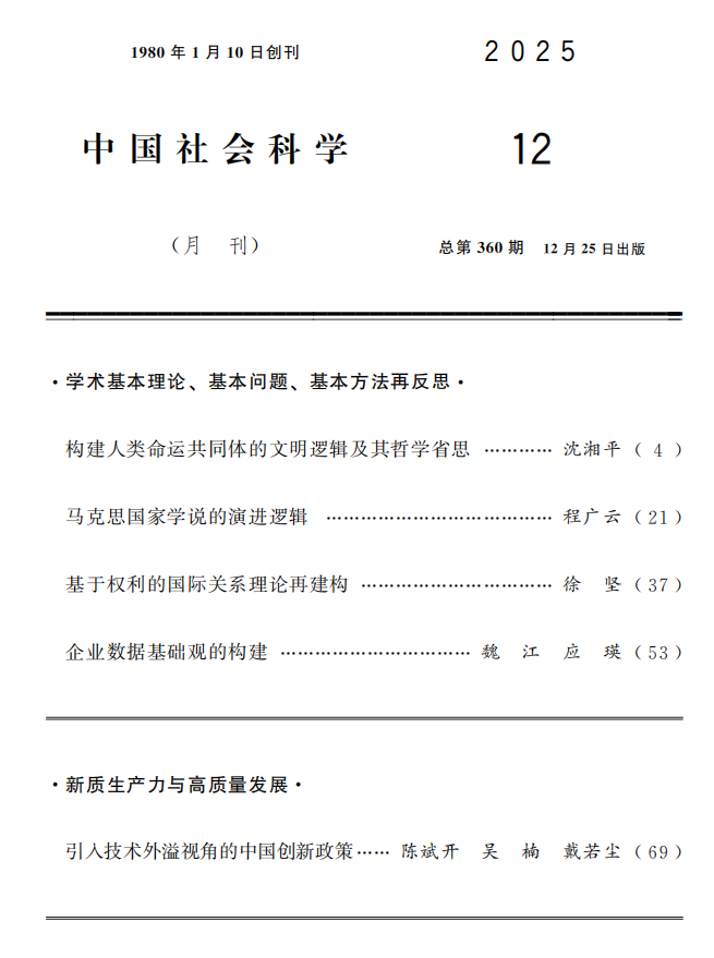 近日,我院陈斌开老师、吴楠老师、戴若尘老师共同撰写的论文《引入技术外溢视角的中国创新政策》在《中国社会科学》2025年第12期刊发。